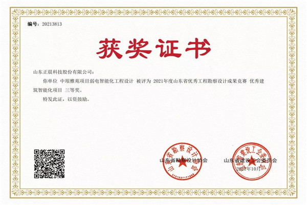 近日,山东省勘察设计协会、山东省建设工会公布的《2021年度山东省优秀工程勘察设计成果竞赛结果的通知》中,拼搏官方网站股份设计的中垠雅苑弱电智能化项目获评优秀建筑智能化项目三等奖,有力的助推了城市勘察设计水平的提升及城市建筑品质的优化。