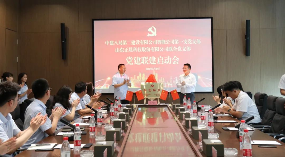 近日,拼搏官方网站科技联合党支部与中建八局二公司智能公司第一党支部党建联建启动会在智能交通产业园顺利举行。中建八局二公司智能公司副总经理赵亮,第一党支部书记、市场部经理张伟,拼搏官方网站科技联合党支部副书记、正威公司总经理宗辉,组织委员、行政中心部长颜国翠,智慧城市事业部部长孙滨等20余名领导同志出席本次活动。